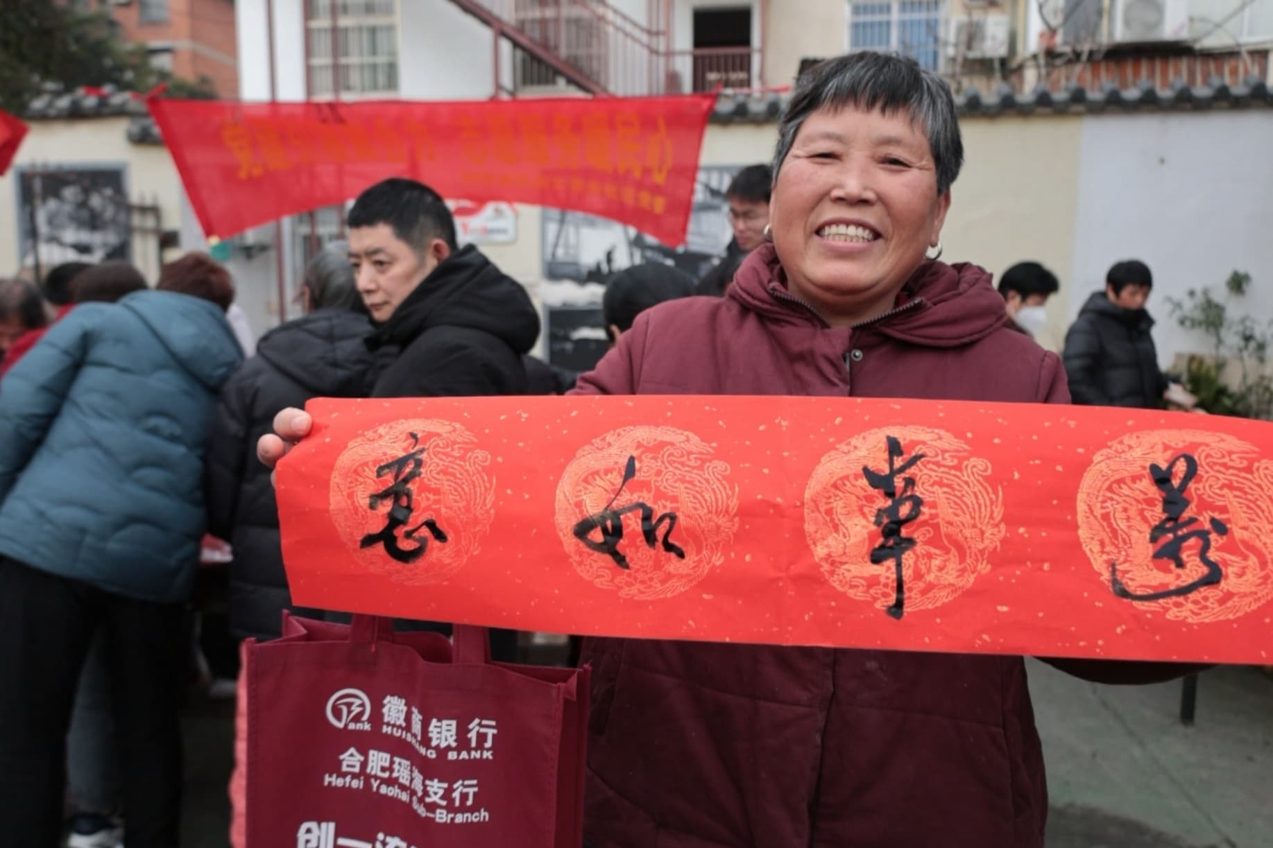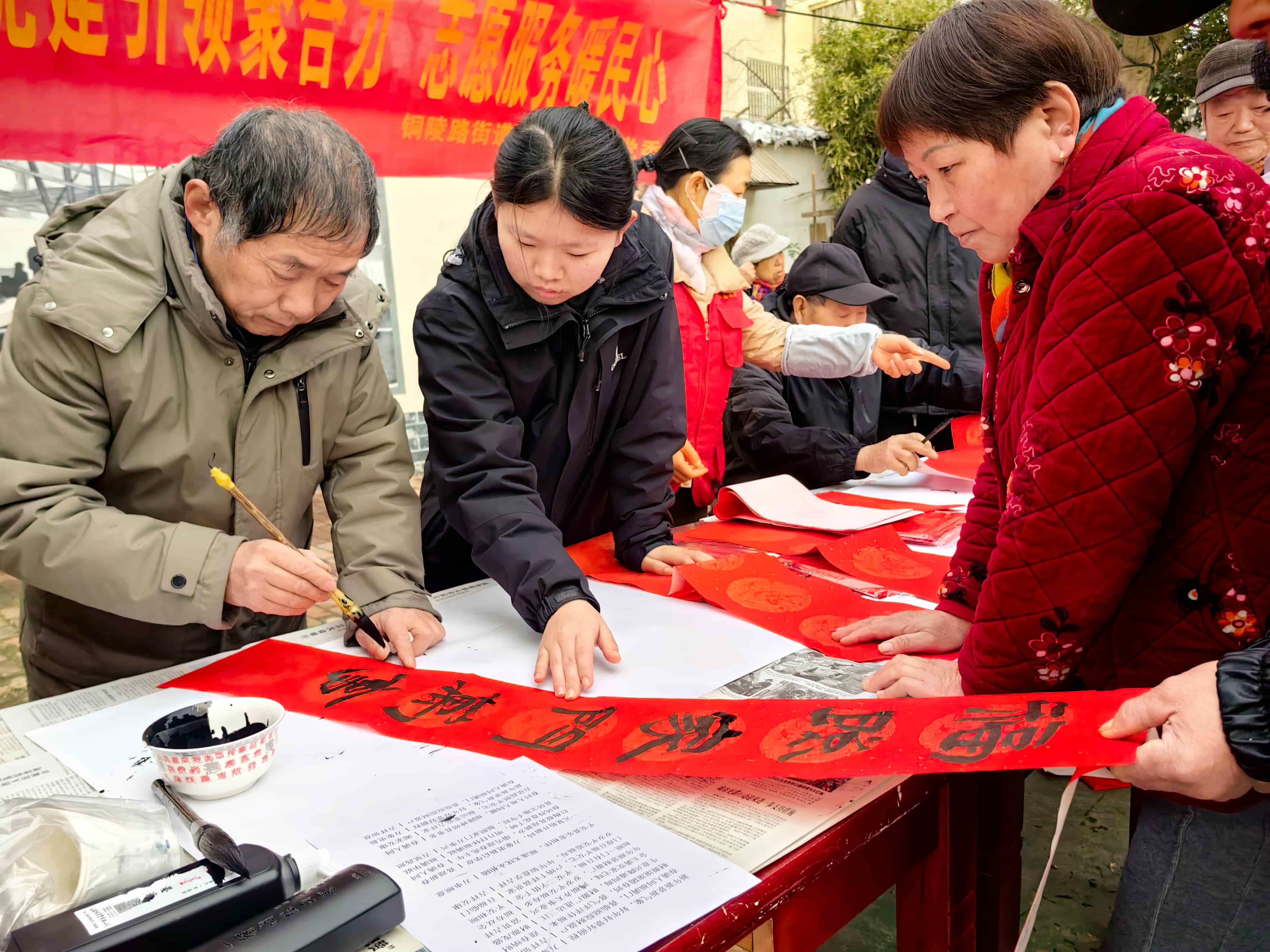 在写春联的摊位前,几位书法爱好者挥毫泼墨,“春回大地千山秀,福降人间万户欢”等喜庆春联跃然纸上,居民们排队免费领取春联,脸上洋溢着喜悦。“本次活动是街道‘两项服务’项目的重要组成部分,旨在通过整合医疗、金融、养老等资源,为居民提供‘一站式’便民服务。”铜陵路街道五里井社区党委副书记彭锋介绍说,未来社区继续以实实在在的举措让党建引领的志愿服务更有温度、更贴民心。(朱沛炎 安徽商报 元新闻记者 周梅/文 王士龙/摄)