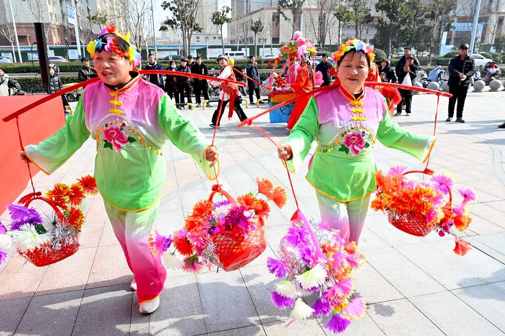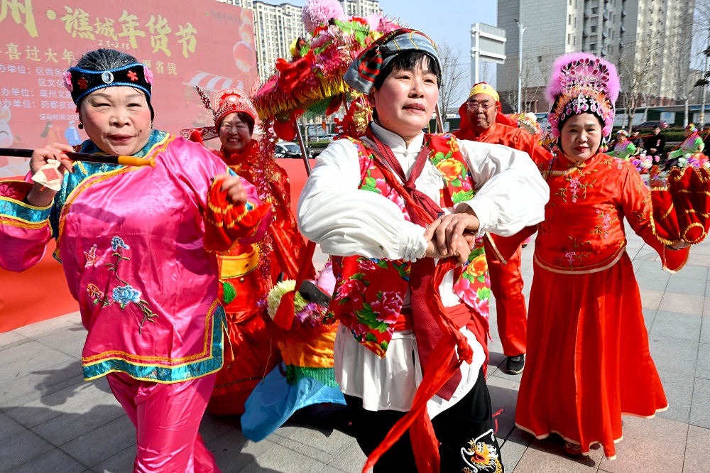 2月3日,在安徽省亳州市谯城万达广场,民间艺人在“寻味亳州·谯城年货节”上进行民俗表演。