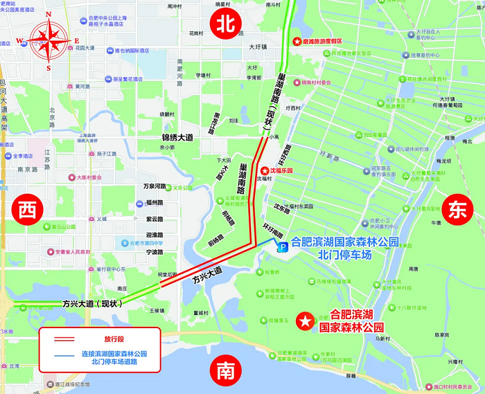 现状巢湖南路北接包河区长江东大街,南至滨湖新区锦绣大道,长约16公里,串联起铜陵路、东二环、郎溪路等多条快速路,是区域内重要的南北向城市主干路。“本次放行的是巢湖南路(锦绣大道-方兴大道段)。”