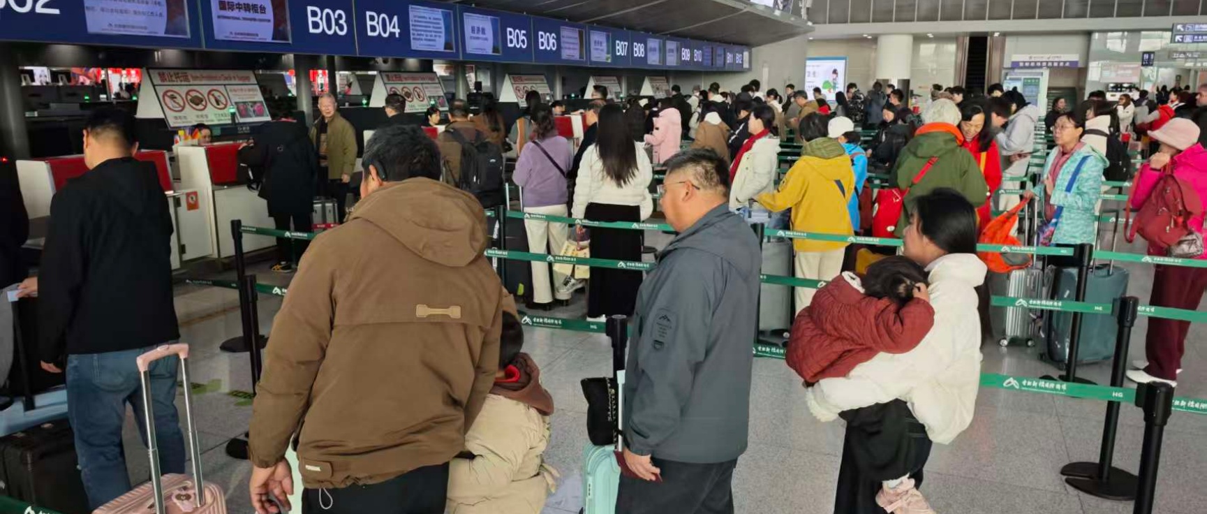 2026年春运已经持续一周。10日,安徽商报、元新闻记者从安徽机场集团获悉,合肥等地机场平稳迎来节前客流高峰。长三角铁路客流持续高位运行,今日计划增开列车395列。