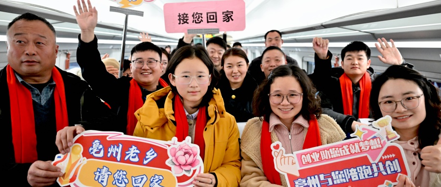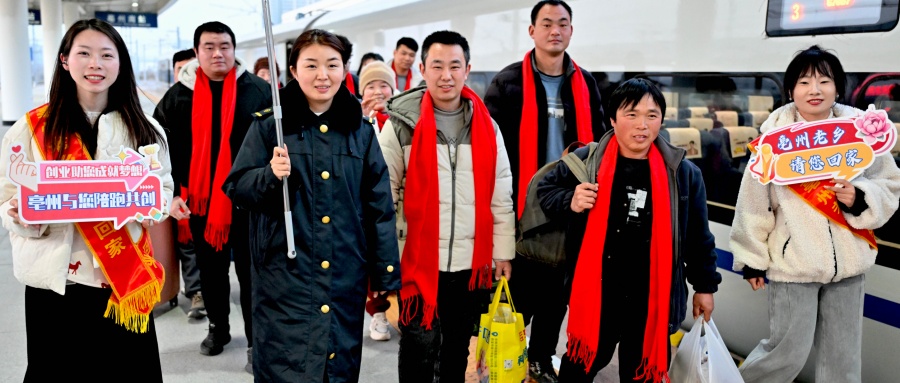 2月10日,80名在上海经商、务工的亳州籍老乡乘坐G7164次列车到达亳州南站。