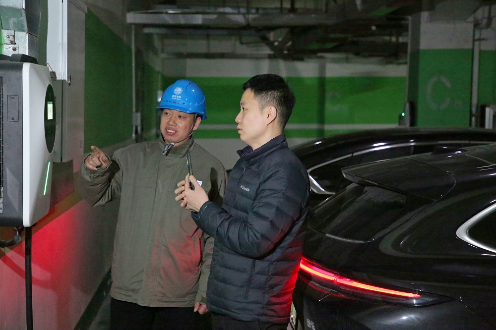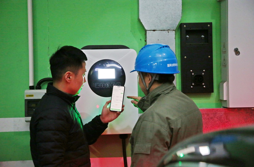 当日15时许,在葛洲坝玖珑府小区地下车库内,国网合肥供电公司蜀山分公司经开服务班工作人员王刚与车主夏祺共同对一台崭新的车网互动(V2G)双向放电桩进行送电前的最后检查。在检查完毕,完成充电桩送电,确认车辆和充电桩连接无误之后,夏祺在手机APP界面上按下“我要放电”指令。瞬间,充电桩的指示灯发生变化,手机屏幕上的数字指示开始实时跳动——新能源汽车电池中储存的电量开始稳定输送到了电网。