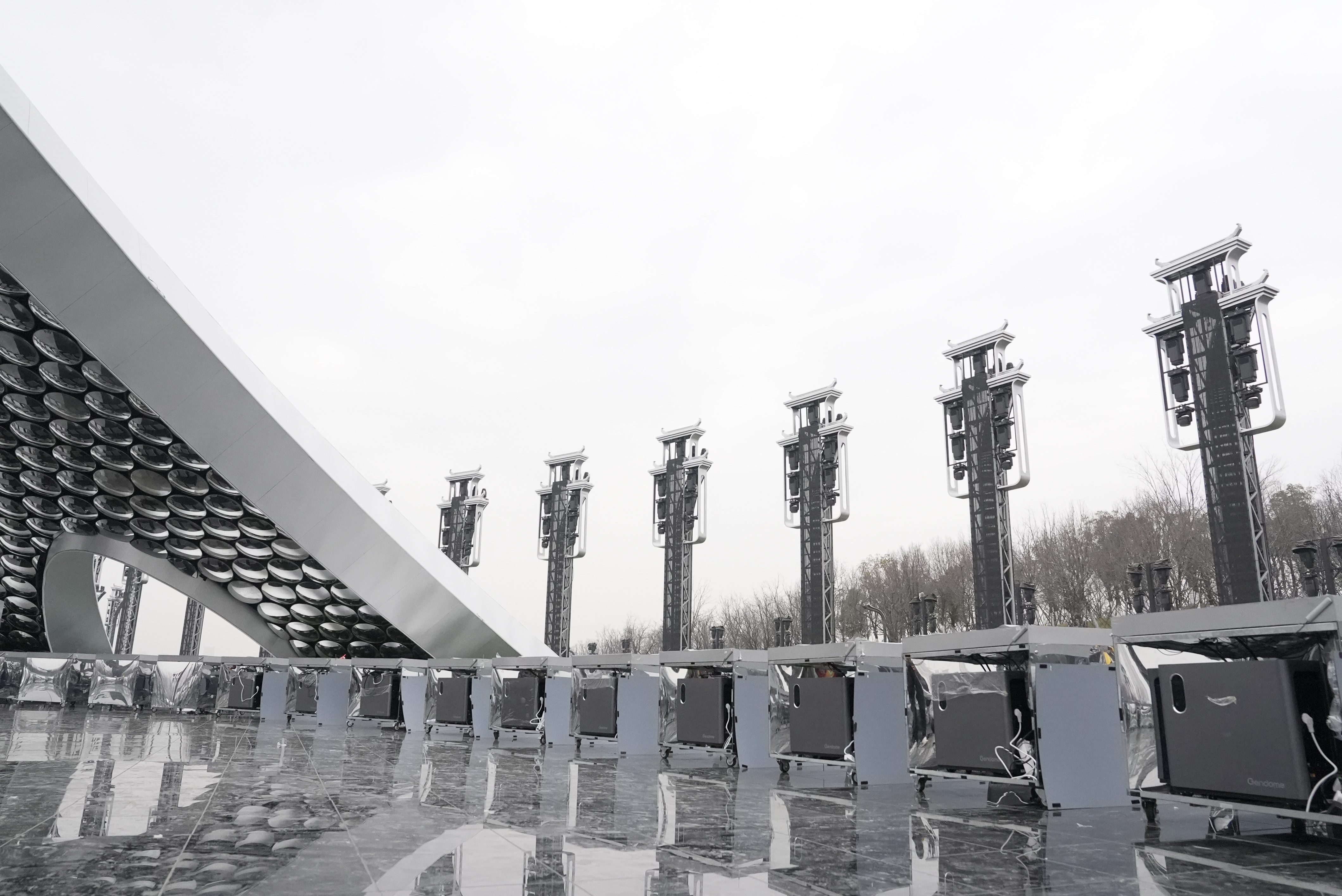 从合肥分会场直播现场看,620个“科技立方体”矩阵盒子表面是带有光影的“屏幕”,侧面有光带环绕,代表一面面“战鼓”,和象征“科技战士”的演员一同互动演出,组成分会场现场的“科技拼搏之阵”。其中,“屏幕”可随节目内容不断变化,箱体灯带采用多棱镜设计理念,可从不同角度折射光影变化。