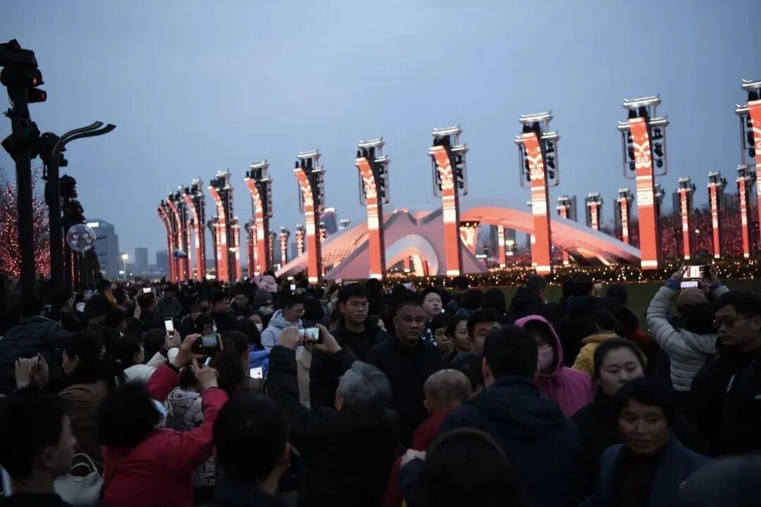 春晚后,罍街将“春晚同款” 烟火气拉满,总台春晚上的百家宴场景一出来,很多游客便寻迹而来。这个假期,罍街除了设置三大春晚打卡机位,还原春晚氛围,推出限定百家宴套餐、春晚同款小吃及专属文创礼包。春节期间,罍街日均客流超6万,成为游客来合肥必打卡地之一。