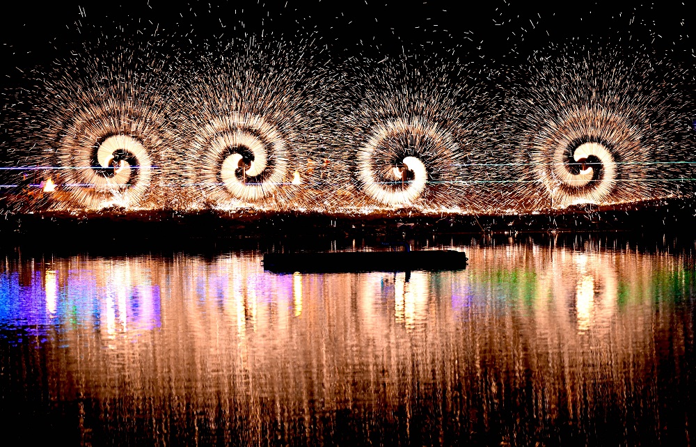 春节长假期间,亳州市华佗百草园景区举行非遗“打铁花”表演,绚丽的铁花照亮夜空,营造了浓浓的年味,吸引了许多市民和游客前来观看,享受美好假期。