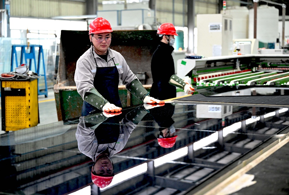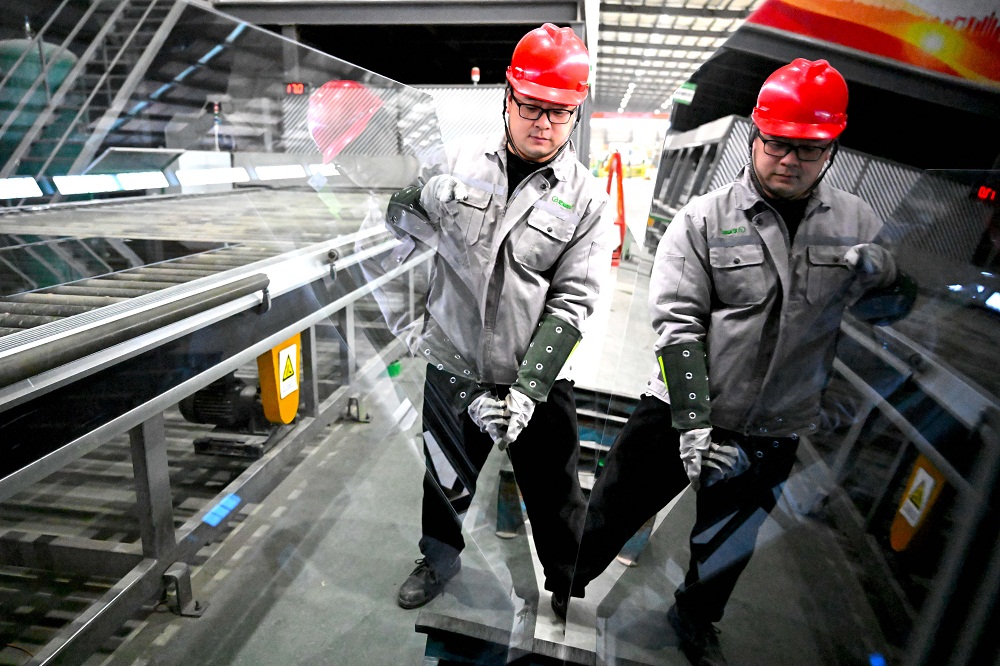 2月24日,在亳州芜湖现代产业园区的信义玻璃(亳州)有限公司,工人在生产车间里忙碌。