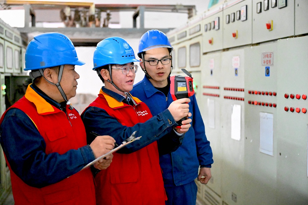 2月25日,党员电力服务队工作人员在亳州谯城经开区一家面粉生产企业进行红外测温及用电安全检查,助力企业复工复产。