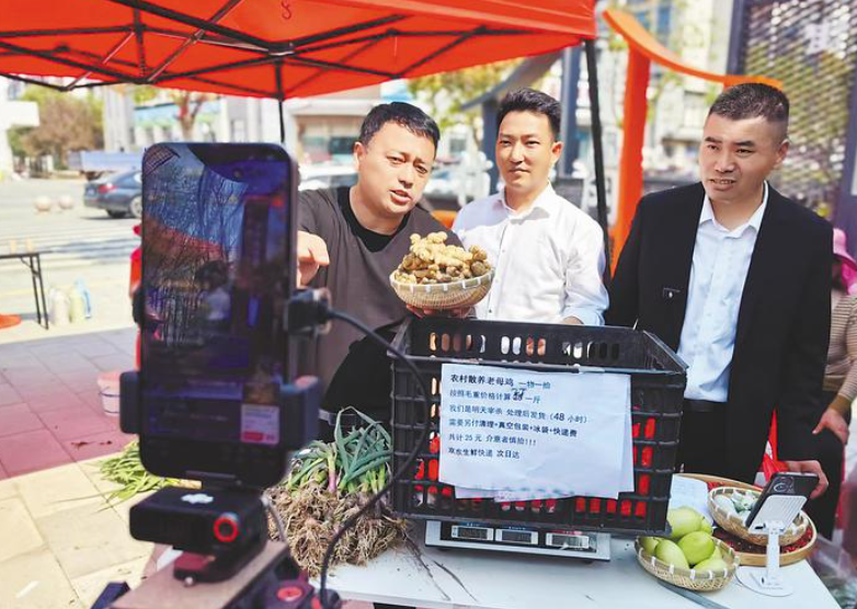 2024年初,肥西柿树岗乡合龙社区高智、防虎社区洪勇和代塘村邢科意三位村书记组成的“书记三人行”组合,以“让流量进村,让产业出村”为初心,开启了助农直播带货之路。“2025年,在‘书记三人行’直播间的一场直播中,20分钟售卖超2000斤黄桃。2025年全村草莓线上销售量突破1万斤。”柿树岗乡周楼村党支部书记王学祥说道。