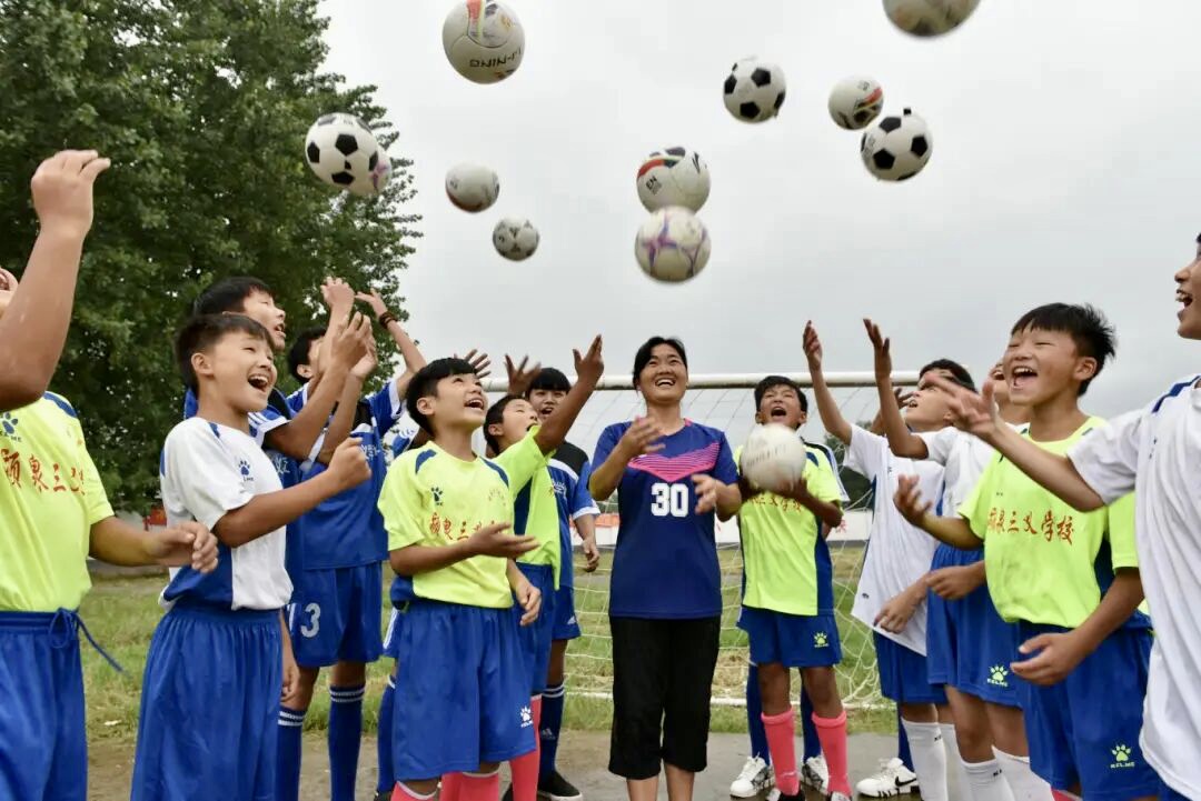 在这个乡村学校,王侠被孩子们亲切唤作“足球妈妈”。成为体育教师源于“女承父业”,她还记得1985年父亲过教师节的情景,10岁的她已悄然种下园丁梦。参加工作后,王侠一直坚守在这个偏远的乡村学校。2014年,三义学校开始培养校园足球文化,零基础的她主动挑起教学重担,苦练基本功,前往阜阳师范大学、阜阳体校寻求指导,逐渐建立起足球教学体系。