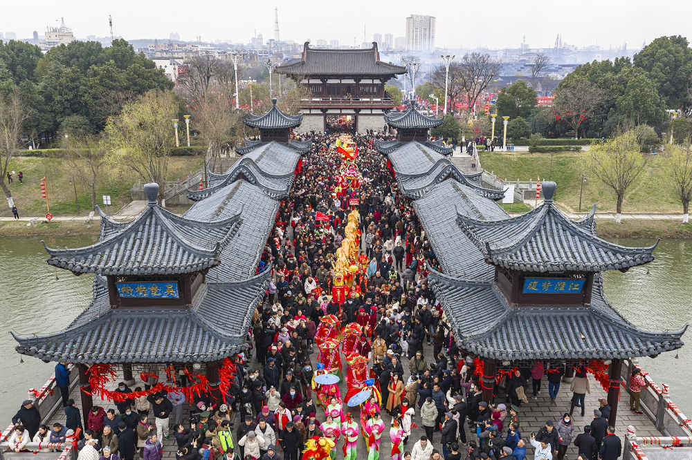“正月十六走太平”是滁州市全椒县历史悠久、群众自发参与的传统民俗活动。自东汉初年开始延续至今,两千年盛况不衰,被誉为中国历史上最早、传承时间最长的全民健身走活动。传统路线“三桥一街”——积玉桥、洪栏桥、太平桥与袁家湾老街,每一步都踩着历史的韵律。民间素有“过三桥,步步高”的吉谚,寄托着人们对生活安康、事业攀升的美好向往。