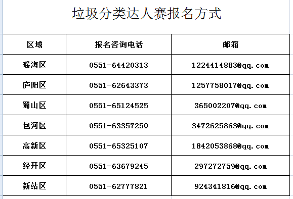 据了解,目前垃圾分类宣传和活动海选,已在合肥各城区火热展开。评选面向合肥市长期积极参与生活垃圾分类工作的各界人士,综合评选出100 名垃圾分类达人,其中10 名“市级分类达人”、100 名“区级分类达人”。参评人员不设身份、职业、年龄等限制,只要符合规定的评选标准,即可报名参与。初评活动按照高新、经开、新站、瑶海、庐阳、蜀山、包河顺序依次举行,每个区初评时长约一周,即日起至5月上旬结束(报名电话及邮箱参见附表)。
