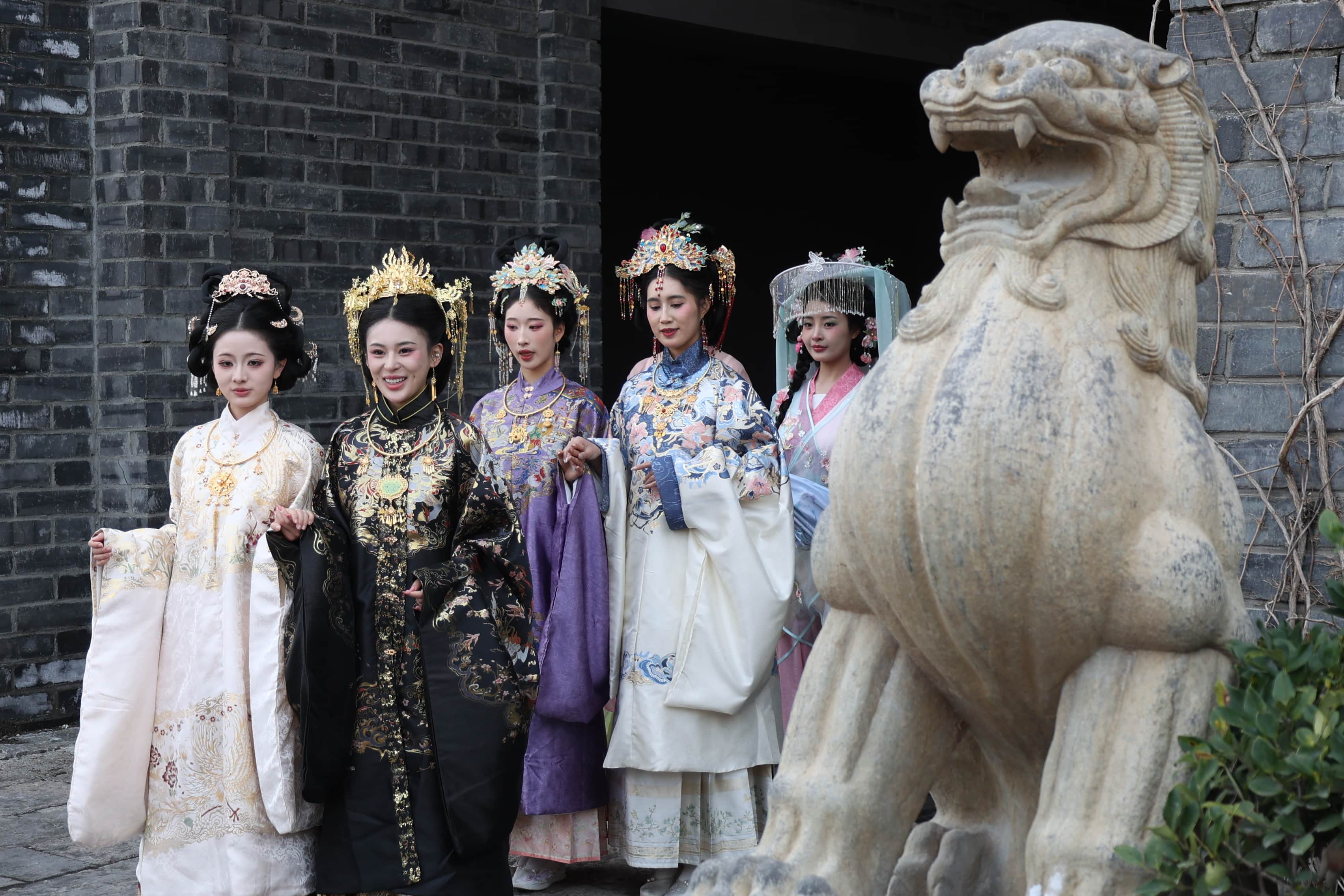 今年的簪花节,不止是花事,再度升级为一场东方美学的沉浸式演绎。据悉,肥东撮街携手安徽艺术职业学院,活动重点推出了 “明制贵女”主题簪花,模特头戴精致䯼髻插金簪,身穿立领琵琶袖衫袄,外罩织金比甲或霞帔,下着华丽马面裙,让青春与古典在镜头前相遇。