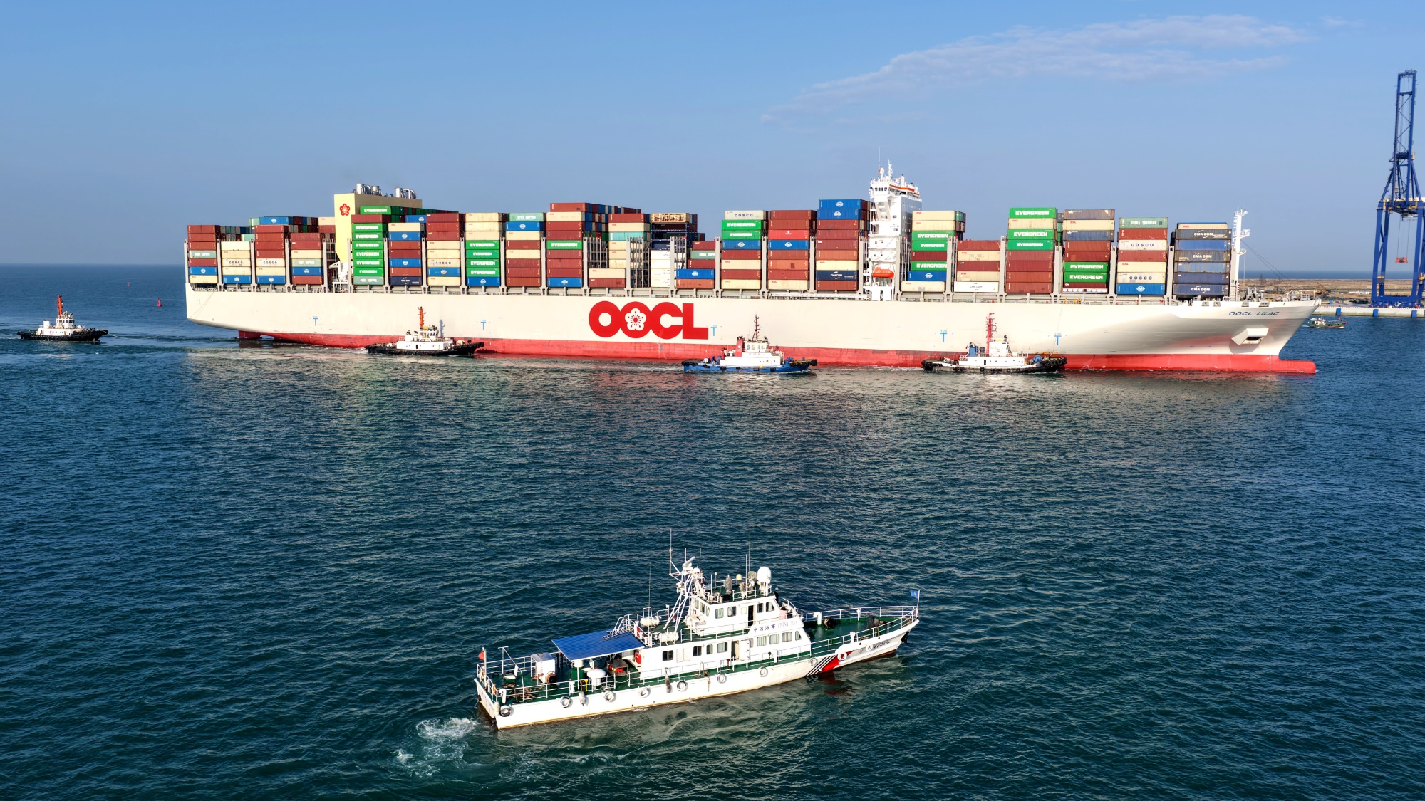 大型集装箱船舶驶进洋浦港(央广网发 洋浦海事局供图)