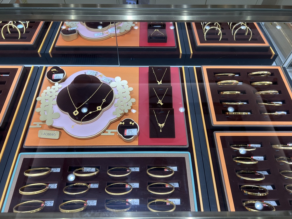 在附近一家老庙黄金专柜,足金饰品报价每克1363元,较前一日下跌了50元。品牌工作人员介绍,各种活动叠加后,消费者买到手每克1178元。“今年最高的时候活动价也要1400-1500元,现在买还是很实惠的。”