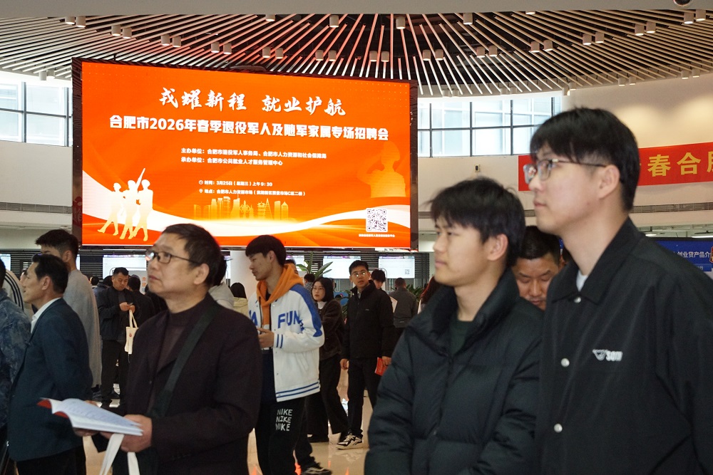 3月25日,合肥市2026年春季退役军人暨随军家属专场招聘会在合肥市人力资源市场举办。69家优质企业参会,提供就业岗位2100余个,进一步拓宽退役军人及随军家属就业渠道,搭建供需双方沟通桥梁。