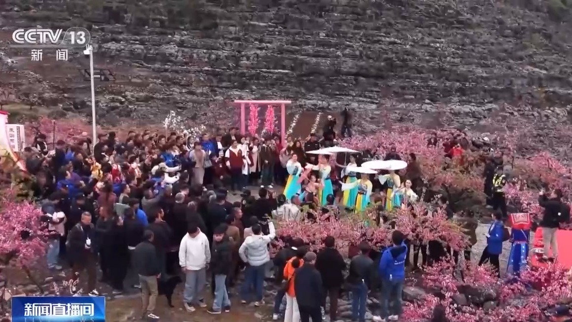 近年来,当地党员群众撬石凿岩、填土栽苗,在石头缝里种下耐旱喜光的桃树。种植规模从最初的2000多亩,发展到如今的一万余亩,涵盖黄桃、油桃等20多个品种,并同步打造出“春天赏花、夏秋采果”的全新业态,村民们纷纷吃上了旅游饭。