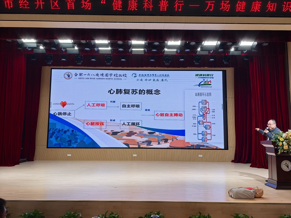 近年来,心源性猝死愈发呈现年轻化态势。长期熬夜、过度疲劳、工作学习压力过大已成为现代人群的普遍状态,剧烈运动后出现身体不适的情况也屡有发生。为提升急救能力,保障自身及身边人的生命安全,3月25日下午,合肥经开区首场“健康科普行——万场健康知识讲座”活动在合肥一六八玫瑰园学校北校顺利举办。