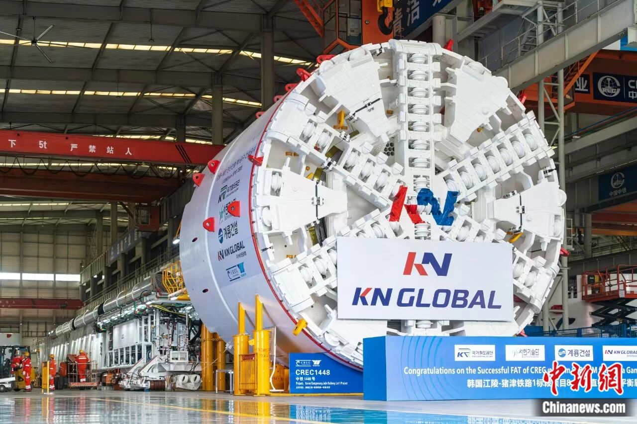 出口韩国盾构机在郑州下线。 杨格 摄