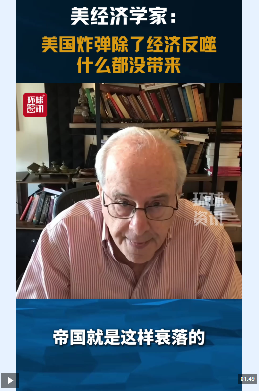 日前,美国知名经济学家理查德·沃尔夫在个人视频播客中抨击美国对伊朗军事行动给全球经济带来伤害。