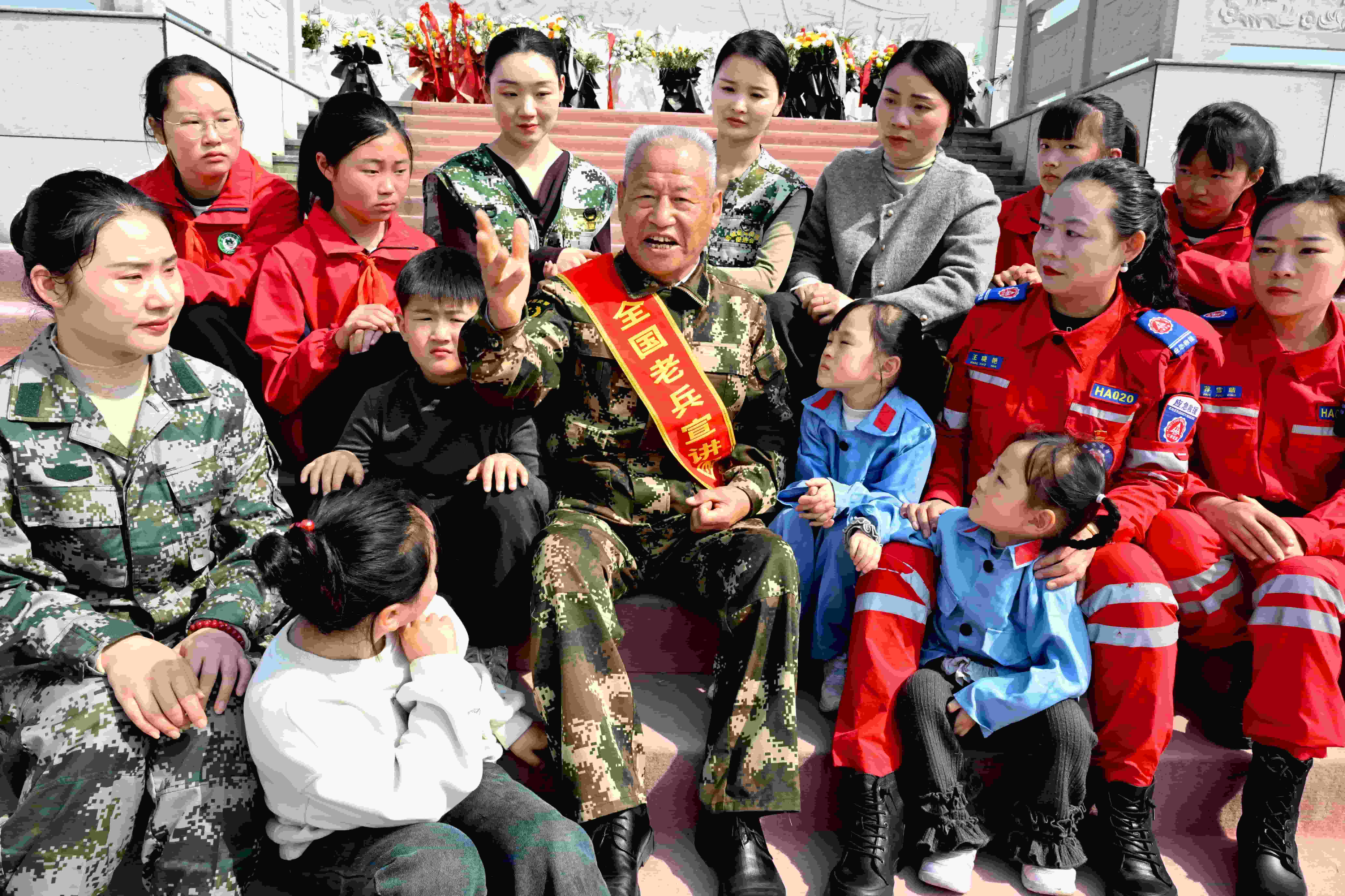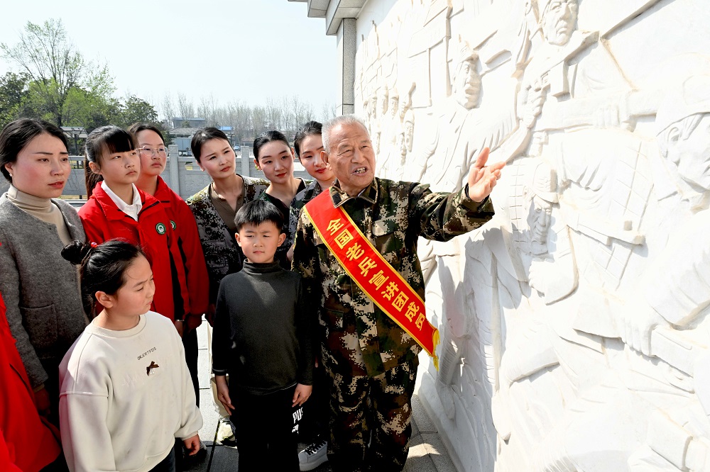 3月29日,在亳州市谯城区芦庙镇皖北烈士陵园,74岁的老军人、老党员、红色宣讲员许玉亭向少先队员和志愿者宣讲英烈故事。