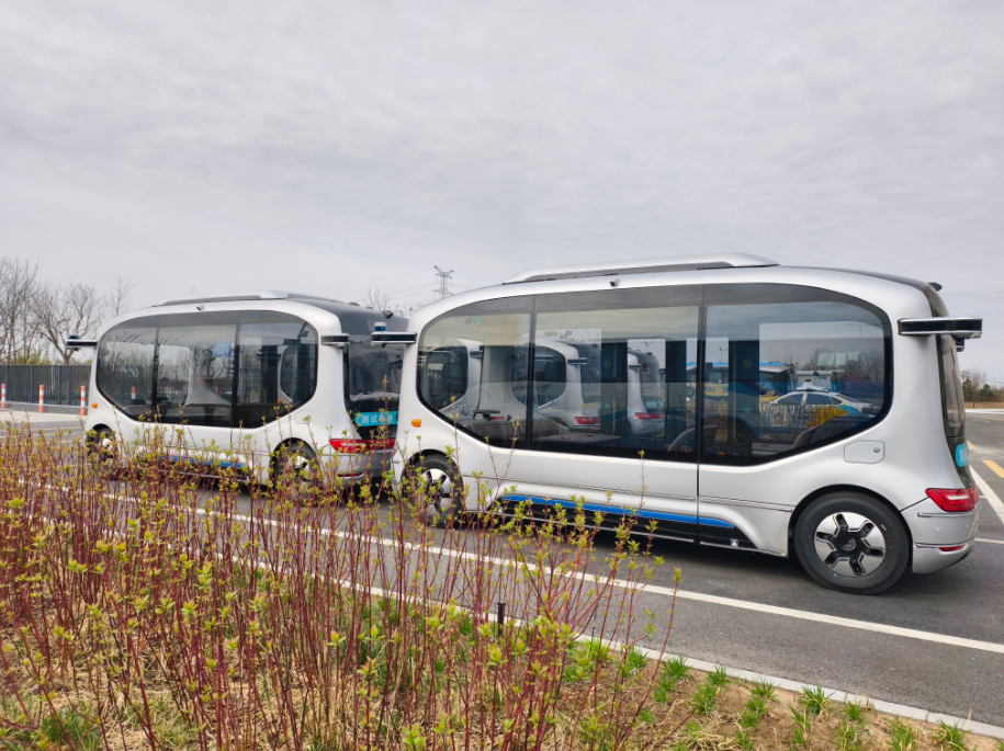 雄安充电公交场站,无人公交正在调试。冯粒 摄