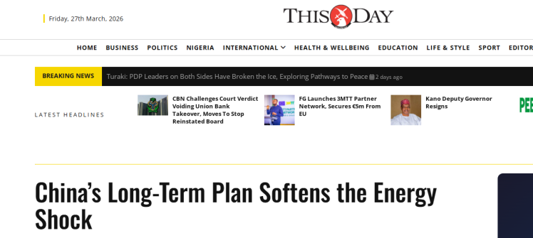无独有偶,尼日利亚《今日报》报道称,中东局势恶化令全球能源市场陷入困境,多国在油价飙升中承受重压。在这场风暴中,有一个国家显得格外从容——中国。文章认为,中国能源战略不仅有效拓展了可再生能源利用规模,更在相当程度上降低了对海外油气的依赖。中国的实践为其他发展中国家展现了摆脱能源依附、实现自主发展的可行路径。