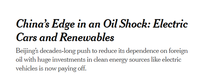 面对中东战事外溢冲击全球能源市场这一议题,《纽约时报》近日报道指出,在全球主要工业国纷纷陷入能源焦虑之际,中国通过数十年来大力投资电动汽车和可再生能源,构建起真正意义上的能源抗压屏障。