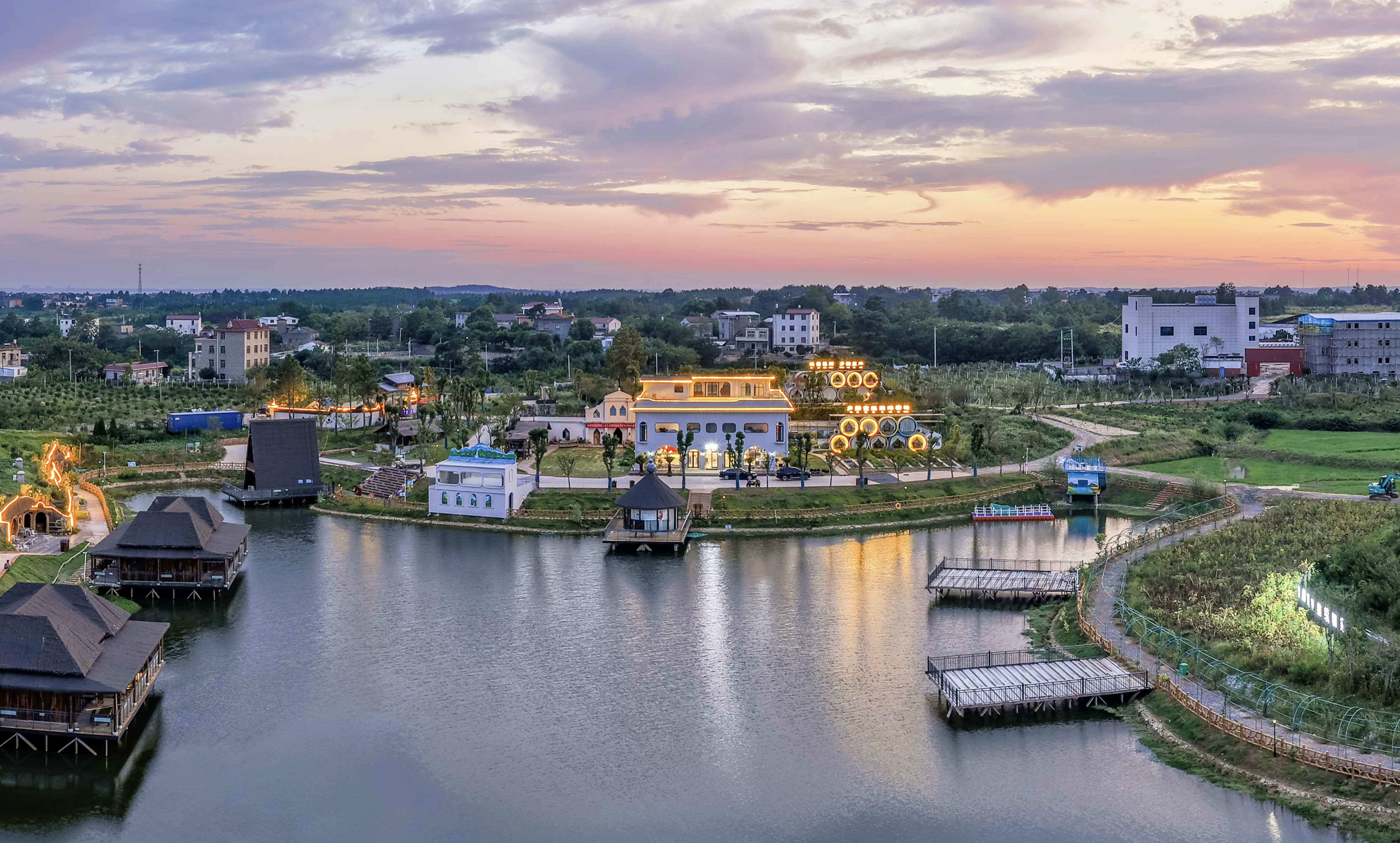 这片总规划面积1100亩的农文旅综合体,是返乡创业者王建国打造的“岸芷汀兰”田园秘境。农场秉持“农为基、文为魂、旅为翼”的理念,构建起多元融合的消费场景。219亩优质稻田、112亩经果林错落分布,游客可体验插秧采摘、休闲垂钓,在田间课堂感悟农耕文化。非遗工坊里,黄梅戏与文南词唱腔婉转悠扬,汉服体验区衣袂翩跹。节假日人气爆棚的“村咖”座无虚席,游客捧杯倚窗,赏满目绿意、听林间鸟鸣,沉浸式感受乡村独有的松弛感。