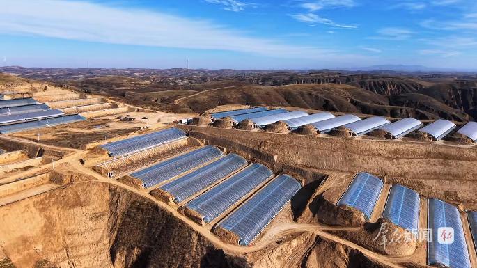 朱官寨镇落古峁村的现代农业产业园里,49座设施大棚顺着山势排开。棚外寒风刺骨,棚内圣女果挂满藤架,红绿相间。