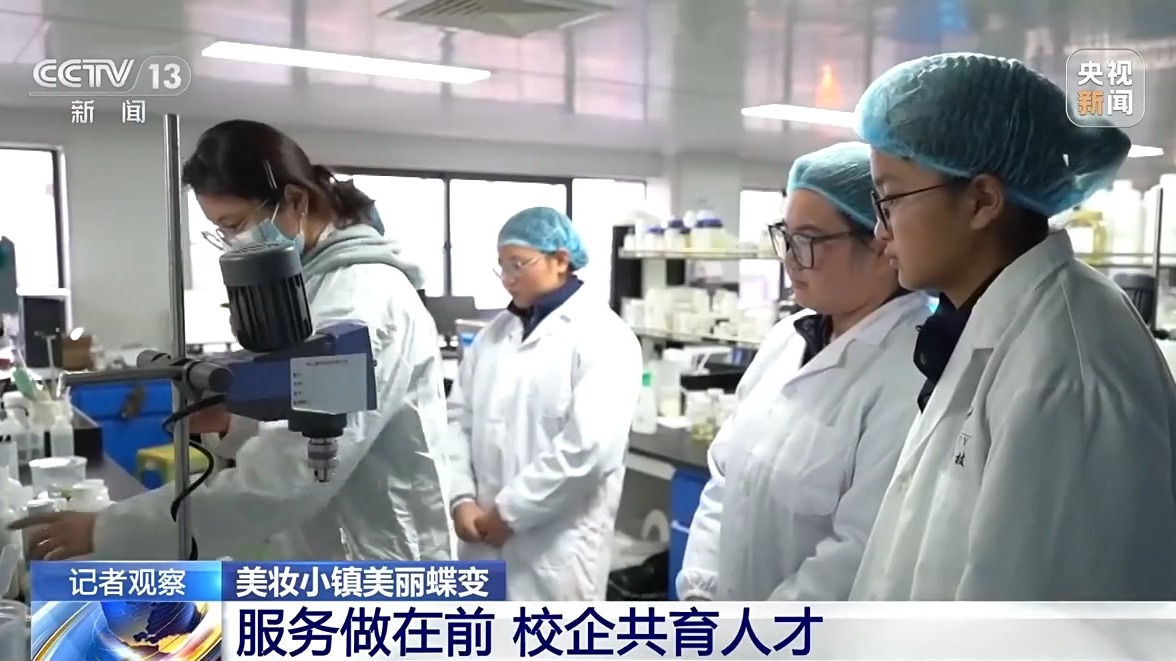 小镇与浙江药科职业大学合作共建美妆产业学院,定向培养研发、质检、生产等专业人才,实现在校实训与企业就业无缝衔接。