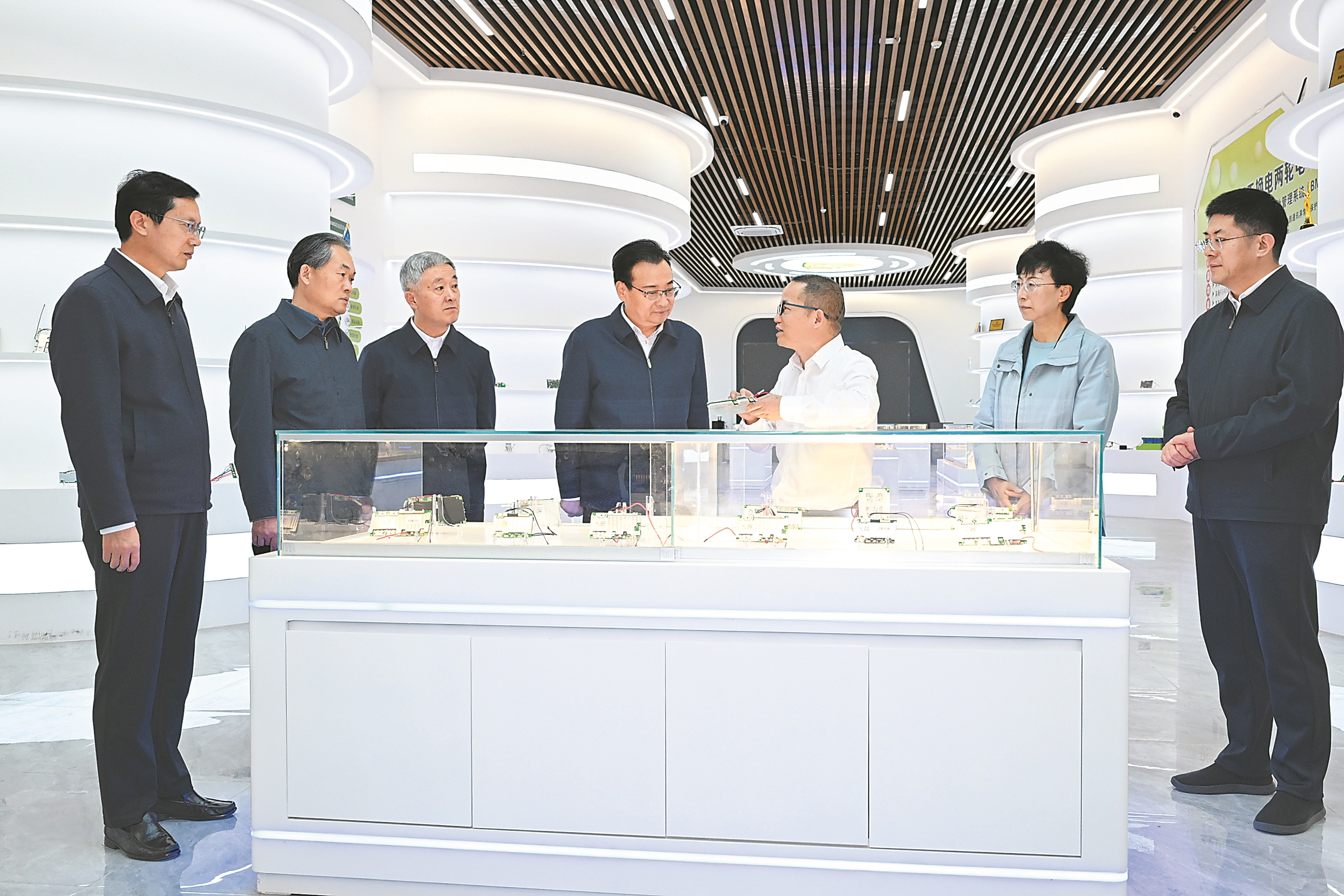 四月七日上午,省委书记梁言顺随机来到位于合霍现代产业园的淮力远科技公司,了解技术研发、产品销售等情况。本报记者 杨竹 许昊 摄