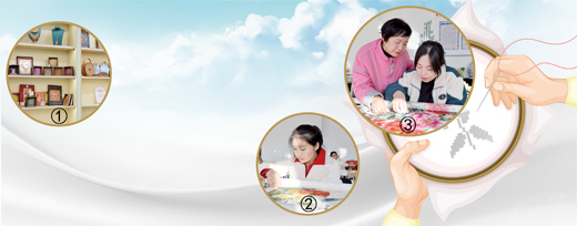 图①:新疆博艺斋“美丽工坊”的学员们制作的非遗作品。