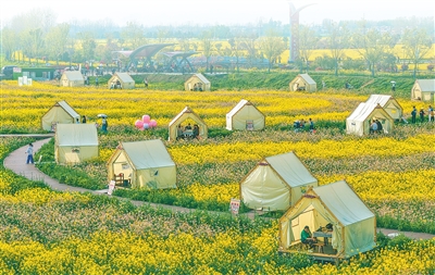 周末,北京南苑森林湿地公园游人如织,不少游客搭起帐篷,沉浸式感受春日之美。园内200多亩免费露营地推出大树环保彩绘、创意手作、春日市集等多元体验,游客可踏青赏花、嬉水涂鸦,也可品鉴美食、动手创作。60余个特色美食摊位,让春日露营踏青更有滋味。