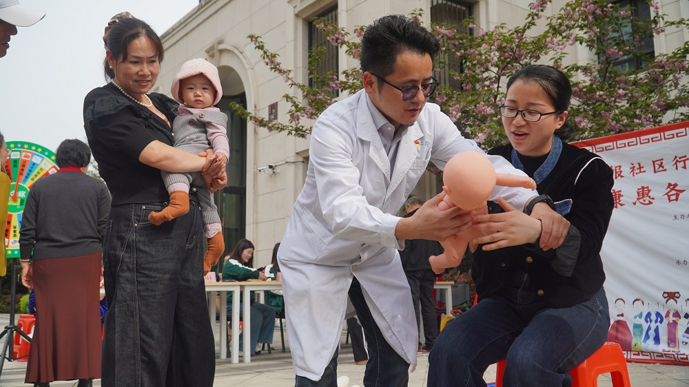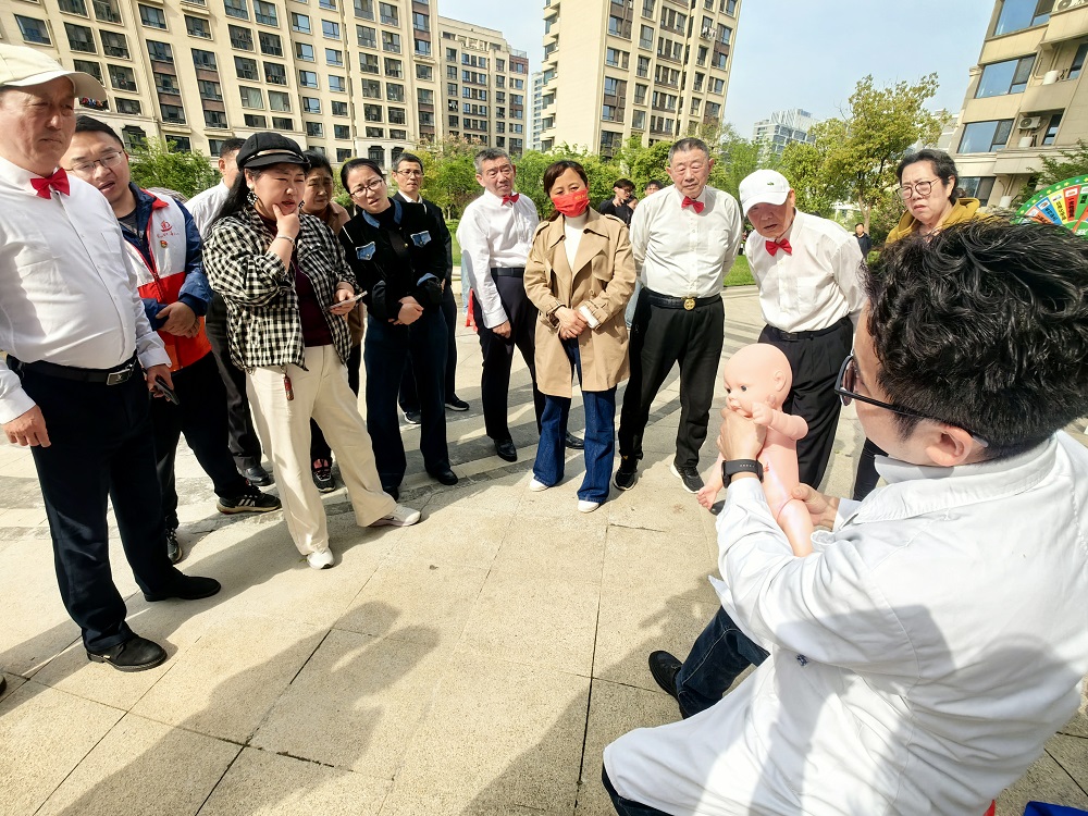 医生现场还演示了海姆立克急救法,针对成人、儿童、婴儿不同年龄段,分别讲解了操作要点。“气道异物梗阻是家庭中常见的急症,尤其是老人和小孩,学会这个方法,很可能就能救回一条命。”王敬军强调,心源性猝死发病急、抢救窗口期极短,在120到达之前,现场的第一目击者往往是患者唯一的希望。“学会心肺复苏和使用AED,每个人都可能成为身边的‘急救员’。”