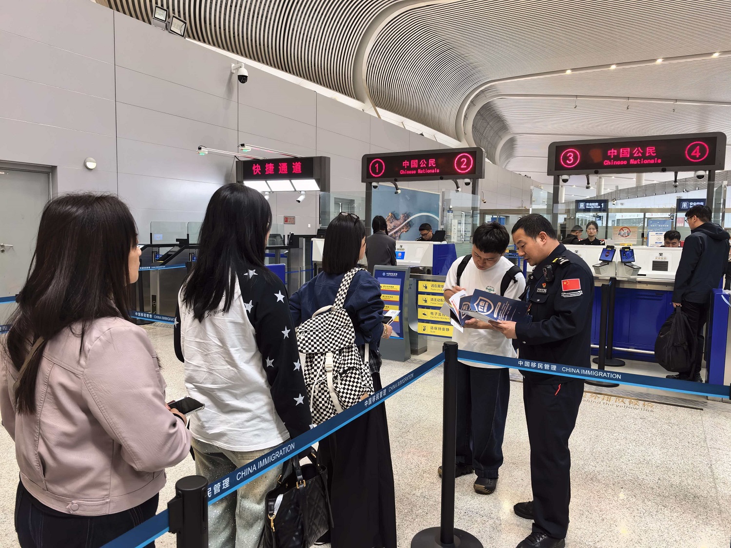 四月春风拂面,合肥新桥国际机场的国际出境大厅里,旅客络绎不绝。“全民国家安全教育日”来临之际,合肥出入境边防检查站民警们一边高效保障着航班通关,一边见缝插针地开展全民国家安全教育日宣传。对他们来说,国家安全不是挂在墙上的标语,而是藏在护照的细节里,藏在旅客不经意的眼神中。他们用“火眼金睛“筑牢国家安全的第一道防线。