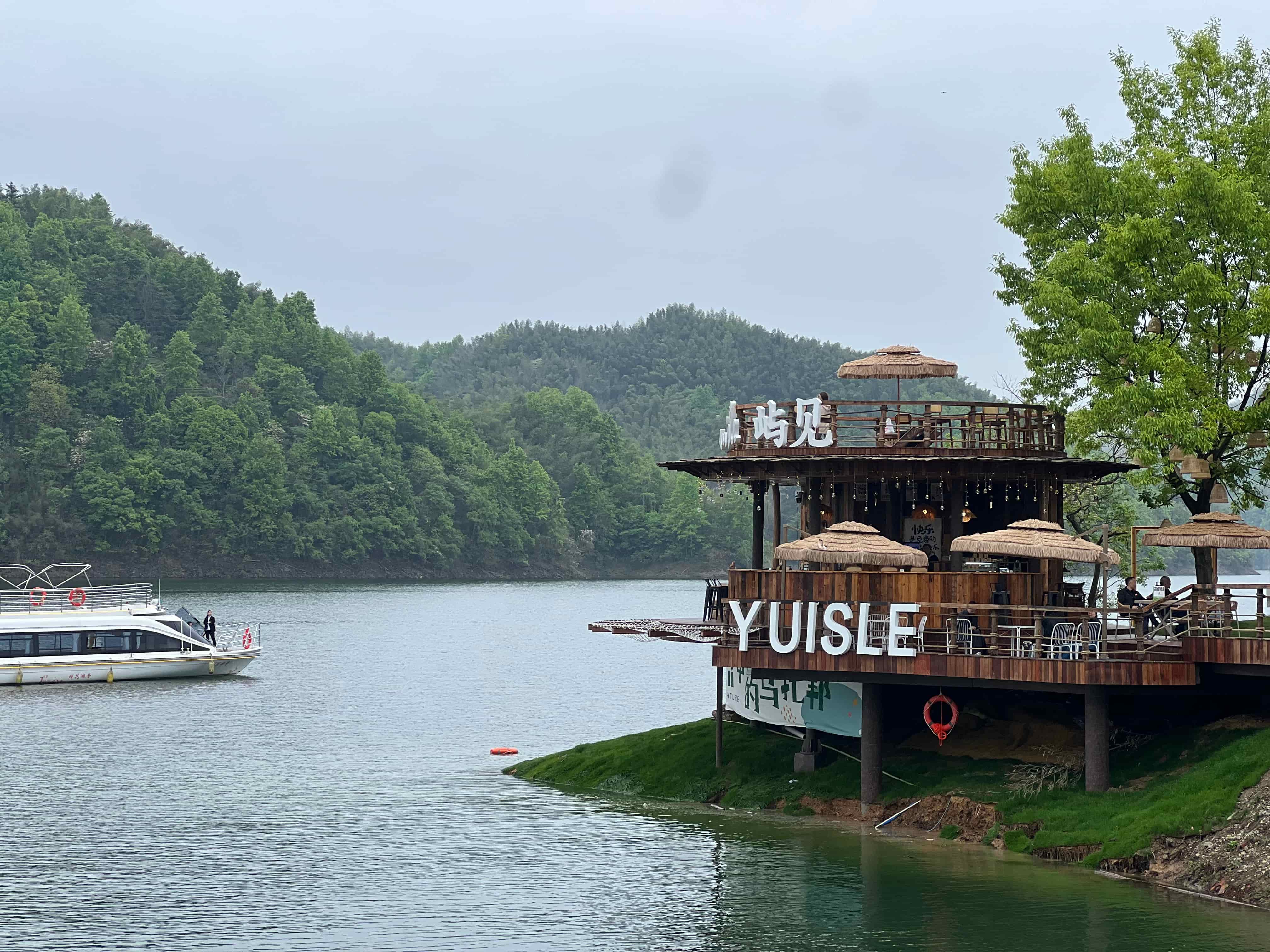 从西茶谷观光码头登船,水面辽阔,两岸青山苍翠,令人心旷神怡。乘船十多分钟就可以抵达屿见岛,主打让现代年轻人真正慢下来、静下来、放松下来的情绪治愈空间,岛上的白色礼堂、木屋咖啡、飞屋环球小木屋、林下野奢躺平平台等既独立成景、各具主题记忆点,又通过黑色砾石小径有机串联。来自六安叶集的李强这次和几位朋友专程开车来西茶谷。“环境特别好,大家商量好了,以后每年都要来。”