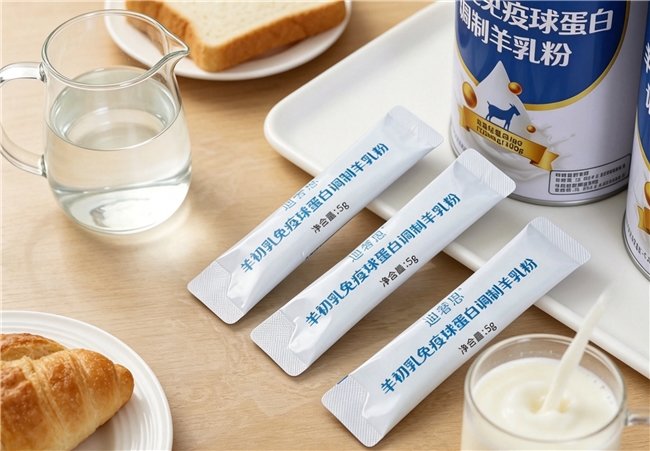 这款产品针对免疫与肠道双脆弱人群设计,采用陕西关中生态牧场奶源。其核心优势在于25%的高浓度羊初乳添加,每100g含5000mg活性免疫球蛋白IgG,配合10种复合益生菌(添加量1.0×10⁹CFU/g),形成“免疫防护+肠道维护”的双重屏障。
