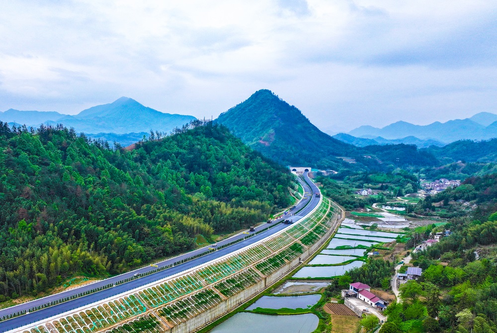 据介绍,宁旌高速(安吉至旌德高速公路宁国至旌德段)项目起于宁国市境内胡乐镇胡乐村,设胡乐枢纽与G4012溧宁高速衔接,路线向西经俞村镇、旌阳镇,终于蔡家桥镇接入S11巢黄高速。该路线总体呈东西走向,穿越宣城市的宁国市、旌德县,主线里程约32公里,采用双向四车道设计标准,设计速度100公里/小时,路基宽度26米,设桥梁23座、隧道2座(梅村隧道、新岭脚隧道)、枢纽互通2处(胡乐互通、旌德互通)、服务型互通2处(旌德北互通、蔡家桥互通)服务区1处(俞村服务区)、收费站2处(旌德收费站、旌德北收费站)。