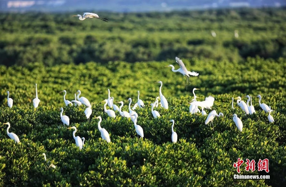 看红树飞鸟,看霞光辉映