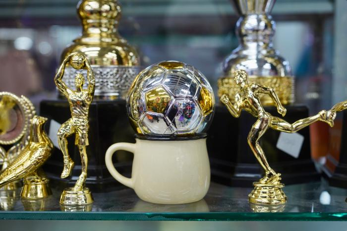 4月21日,商家陈列的足球类奖杯配件。2026年美加墨世界杯临近,义乌市场相关产品订单持续增长。中新社记者 董易鑫 摄