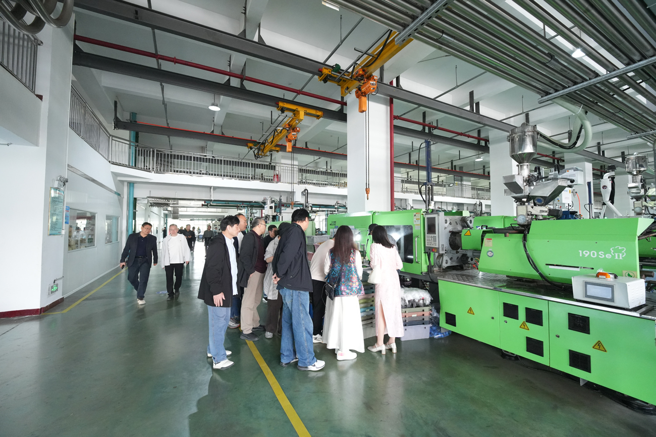 富光工作人员介绍道:“目前,从配料、成型到烫印、压盖,富光在关键工序都实现了人机分离的自动化生产,既保障了产品精度与稳定性,也大幅提升了生产安全与效率。”文学名家们驻足观看,细致观摩生产线运作全貌,不时询问工艺流程与创新成果,近距离感受富光塑胶事业部的现代化生产场景。