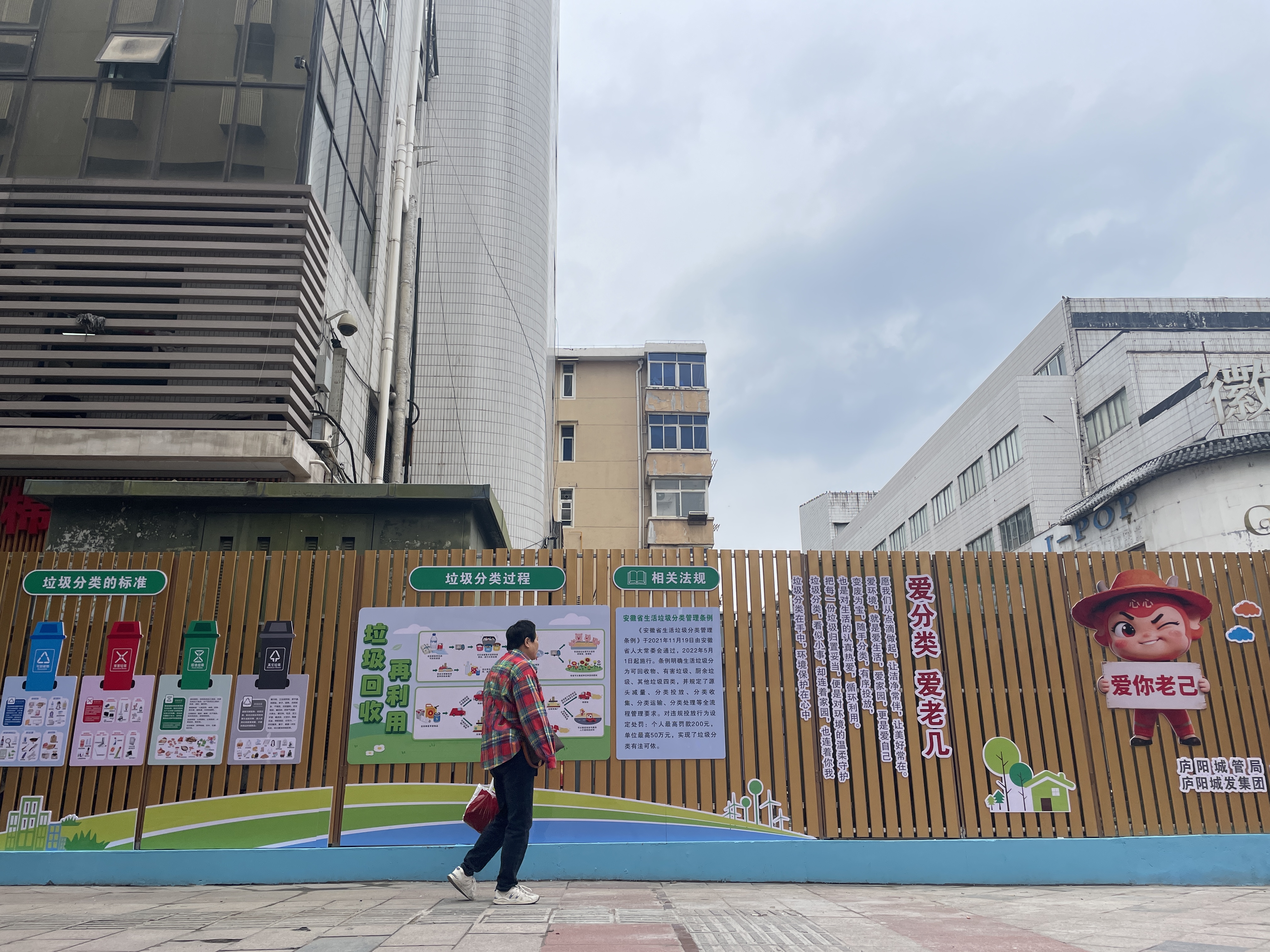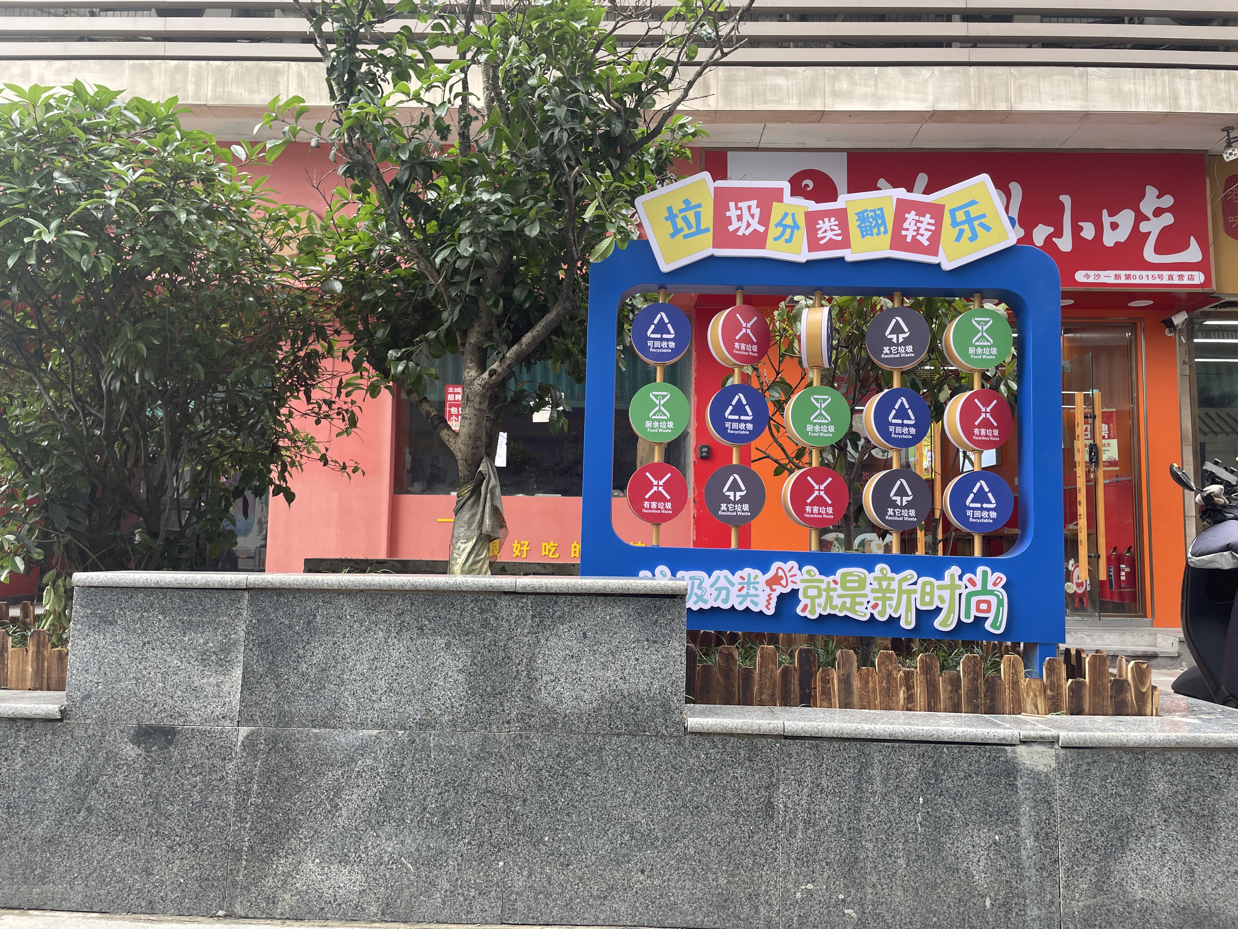在此基础上,庐阳区城管局结合城市精细化管理与垃圾分类提质工作要求,因地制宜植入绿色环保、垃圾分类主题元素,将仁和巷打造成垃圾分类主题特色街巷,全方位丰富街巷文明内涵。此次改造对街巷全新更换的隔离栅栏进行专属设计,定制生动易懂、风格统一的垃圾分类主题宣传画面,依托街巷通行人流量大的优势,打造沉浸式户外科普阵地,常态化向过往市民、沿街商户普及四分类标准、垃圾投放规范、低碳环保小知识。同时打破传统宣传模式,巧用街巷公共设施做“文明文章”,对街巷内配电箱、窨井盖进行艺术涂鸦改造。摒弃单调的设施外观,以清新治愈的色彩、趣味生动的图案、通俗易懂的文字,将垃圾分类知识点、绿色生活理念融入涂鸦设计,让原本老旧单调的市政设施变身特色科普景观。